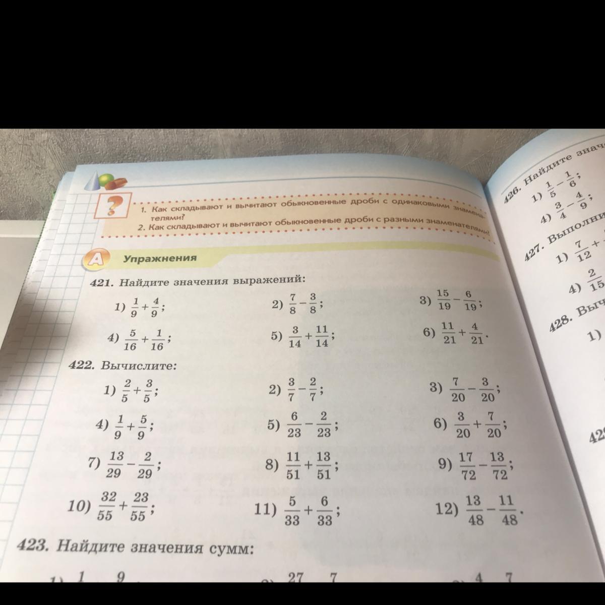 Дробь имеете числитель (число, что сверху) и знаменатель (число, что снизу). Для того чтоб сложить или отнять дроби нужно чтобы их знаменатель был одинаковым. В этих примерах знаменатель везде одинаковый. Значит нужно просто складывать или отнимать числитель, а знаменатель оставлять неизменным.