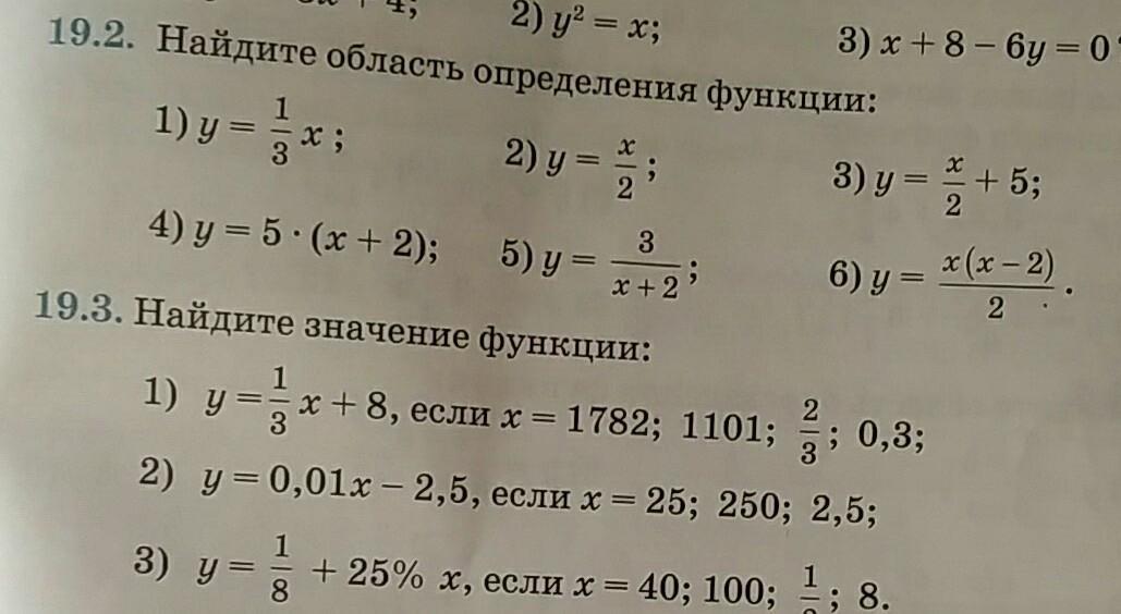 ВО всех номерах ,кроме пятого областью определения служит любое число, а в пятом номере обл. определения - все числа, за исключением минус двух ,которые обращают знаменатель в нуль. А делить на нуль нельзя.