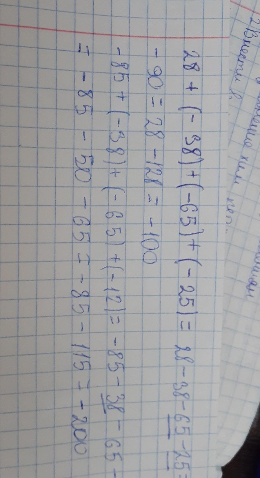 во 2 -85-100 минус на минус плюс значит они складываются, но минус спереди остается