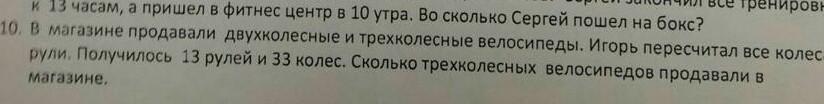 13-Х=13-6=7 велосипедов трехколёсных