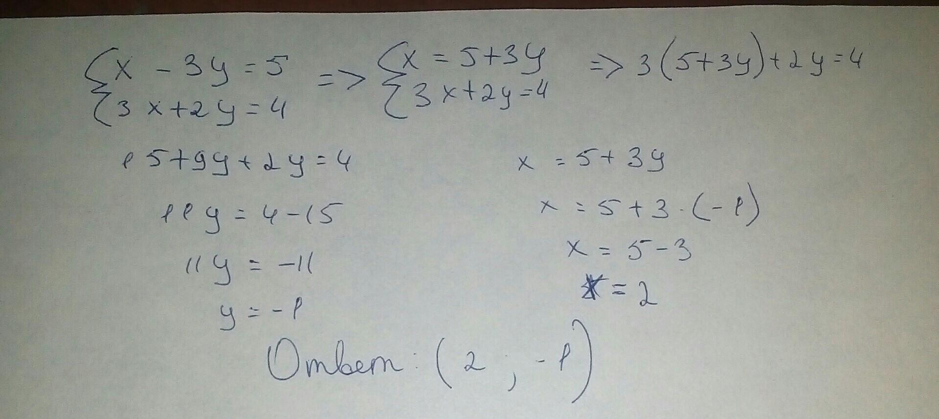 x=5+3y подставляем во второе уравнение