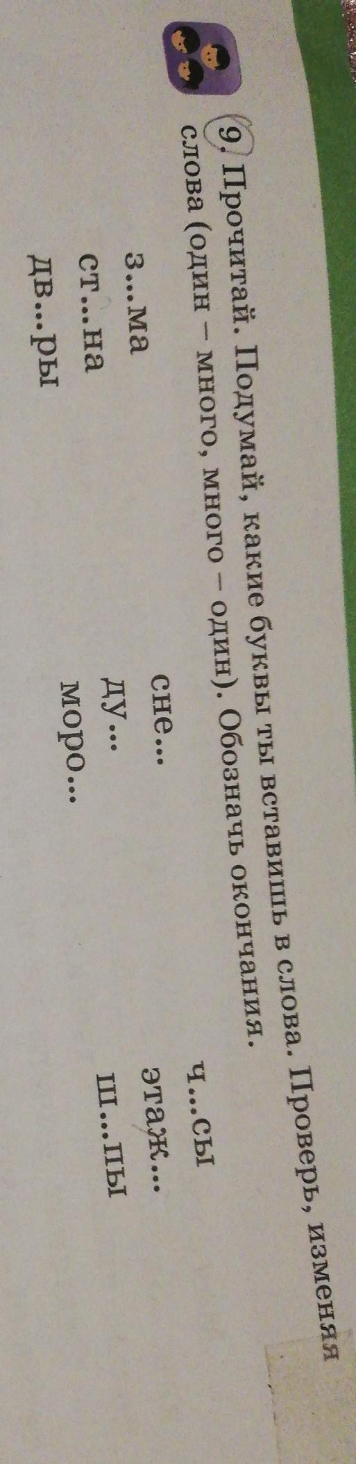 прочитай подумай какие буквы ты вставиш в слова проверь изменяя слова (один-много, много-один) обозначь окончания