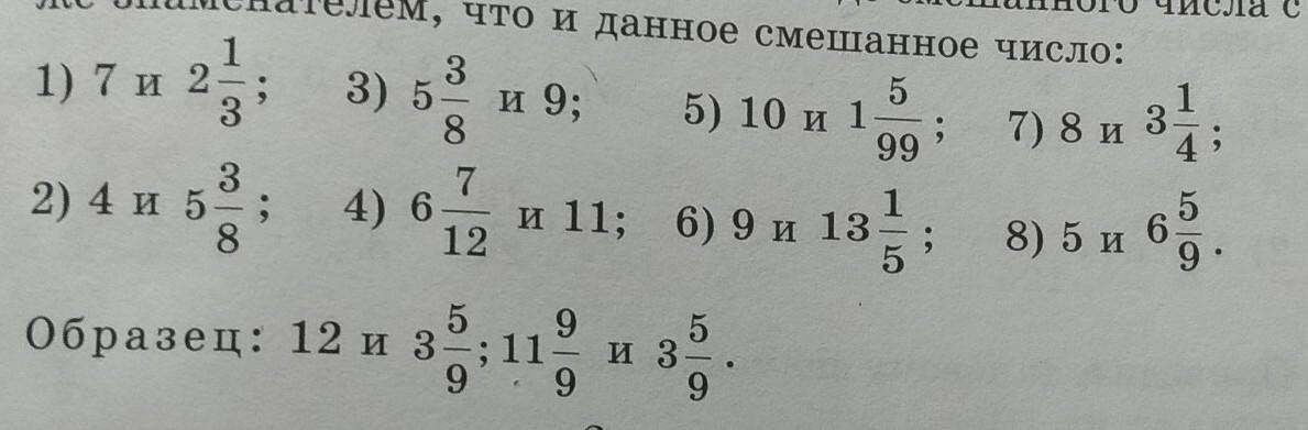 Представьте натуральное число в виде смешанного числа с тем же знаменателем что и данные смешанное число