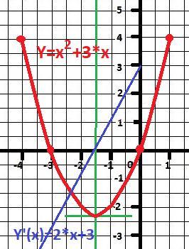 y'(x) = 2*x + 3 = 0, 2*x = - 3. Корень: х = -1,5.