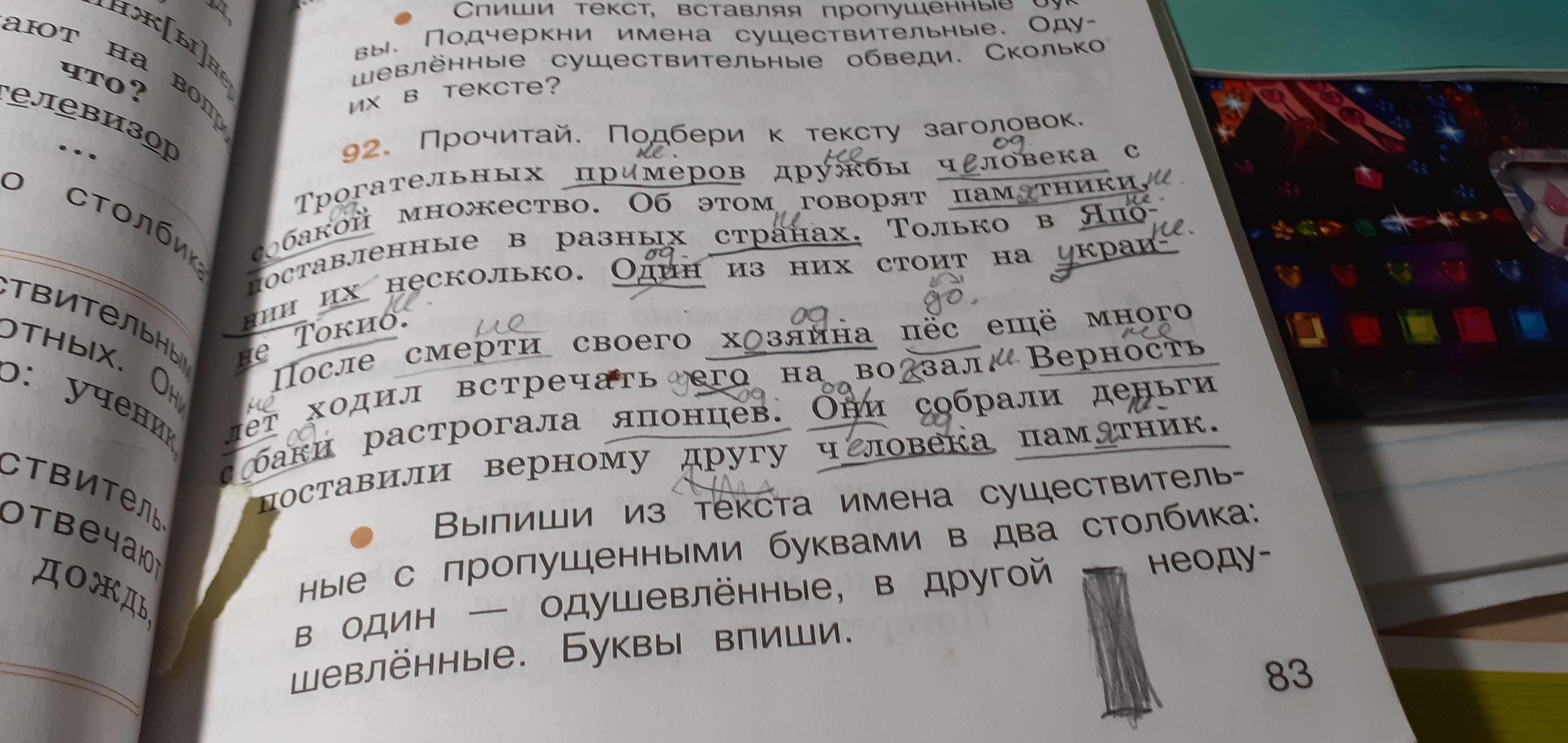 неодушевленные:памятник, примеров, дружбы, вокзал ,смерти, Токио, Украина,Япония ,деньги,странах