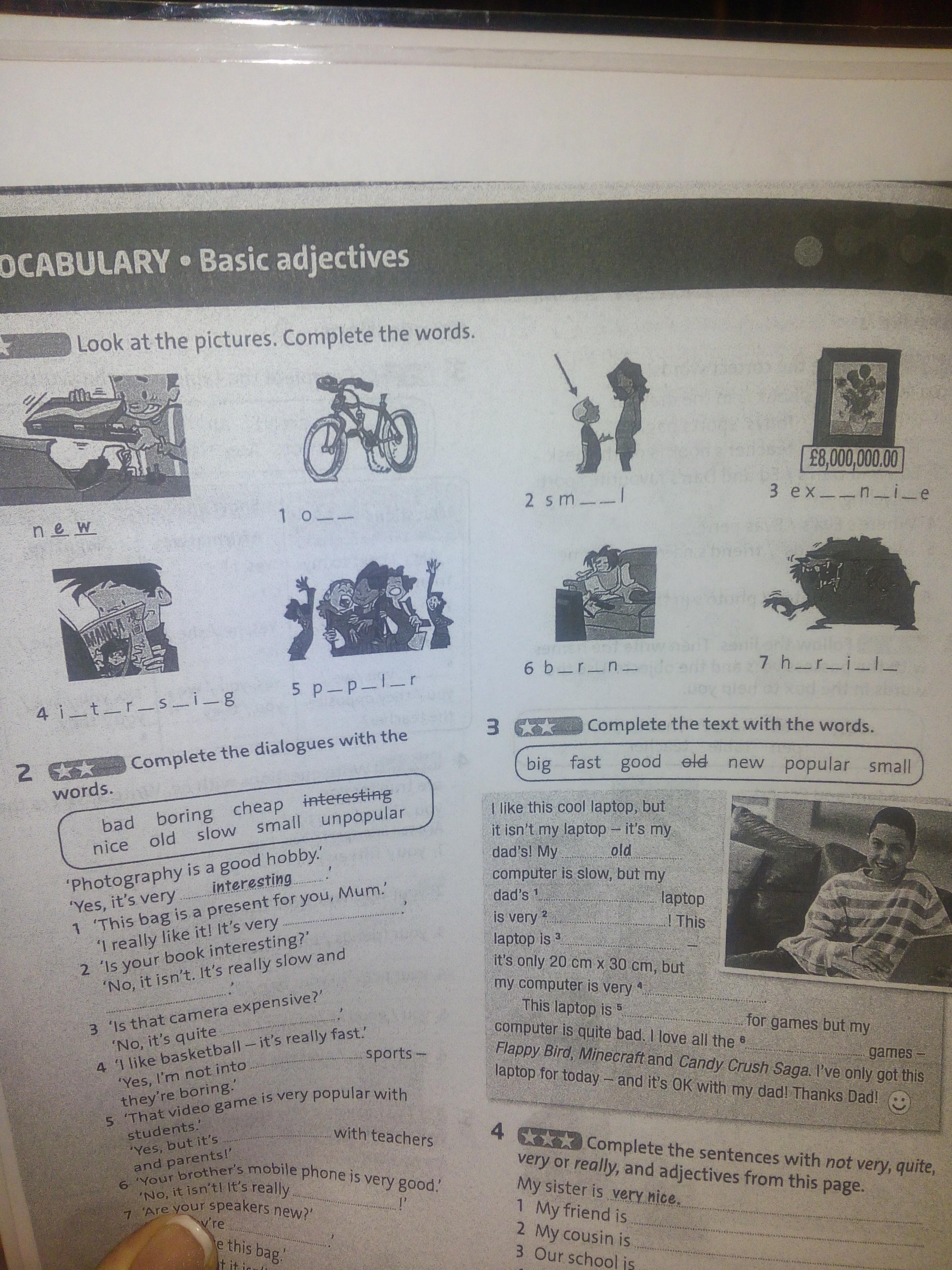 1) old; 2) small; 3) expensive; 4) interesting; 5) popular; 6) увы, не знаю.