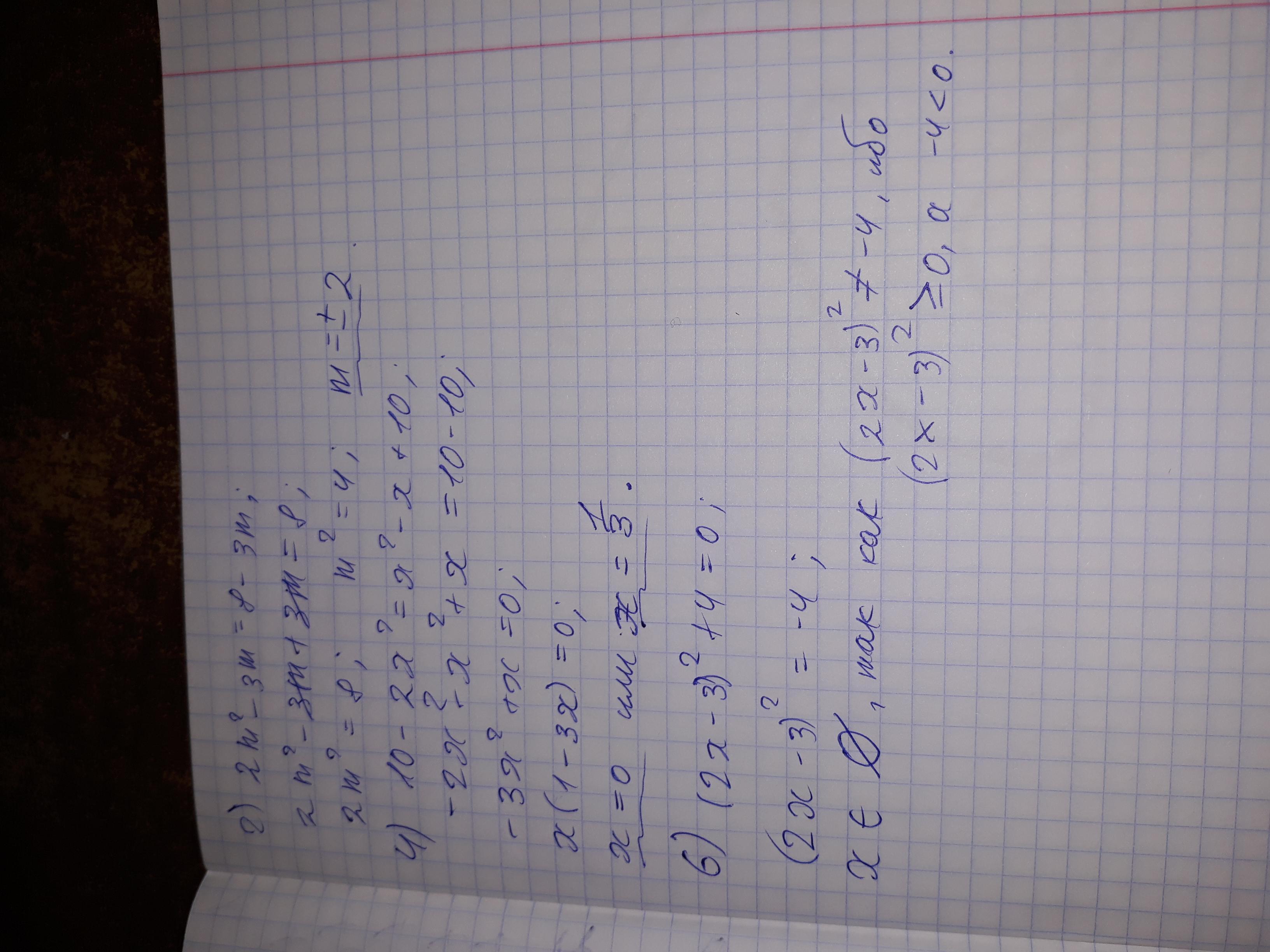 Ответ: 1) 2 и -2; 2) 0 и 1/3; 3) нет корней.