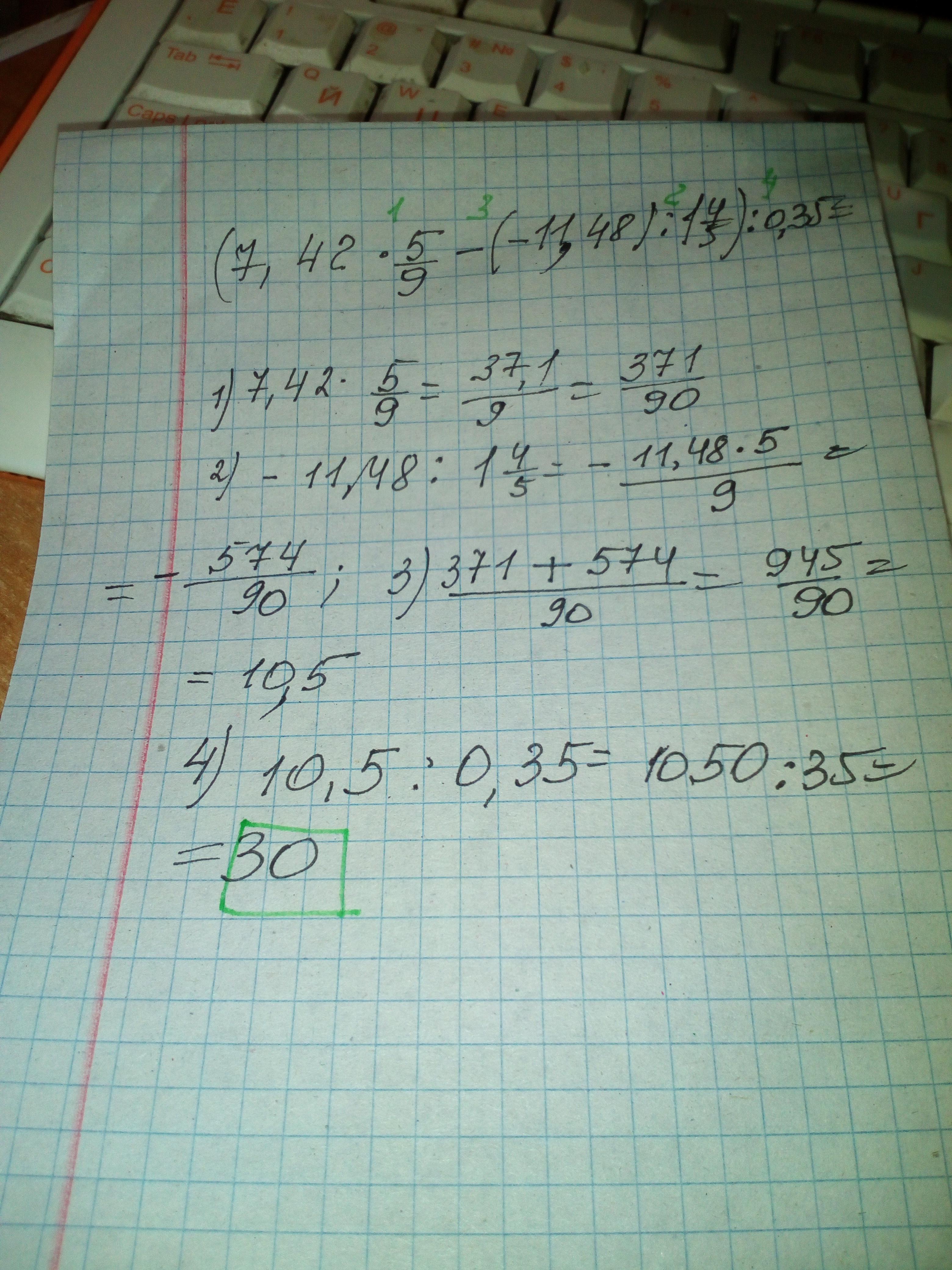 5/9*(7,42-(-11,48)):0,35=5/9*18,9:35/100=5/9*189/10*100/35=30