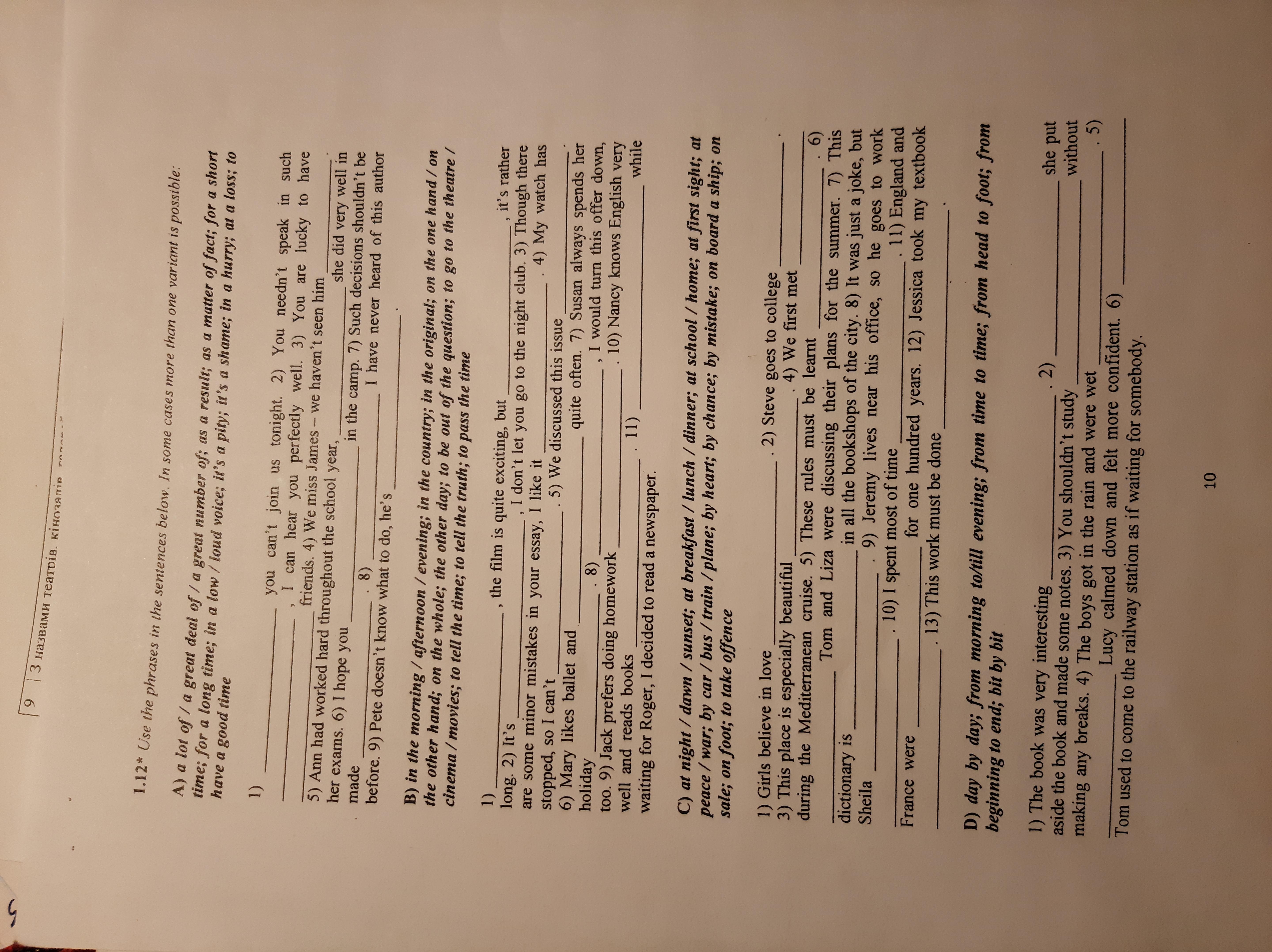 1.12* Use the phrases in the sentences below. In some cases more than one variant is possible: