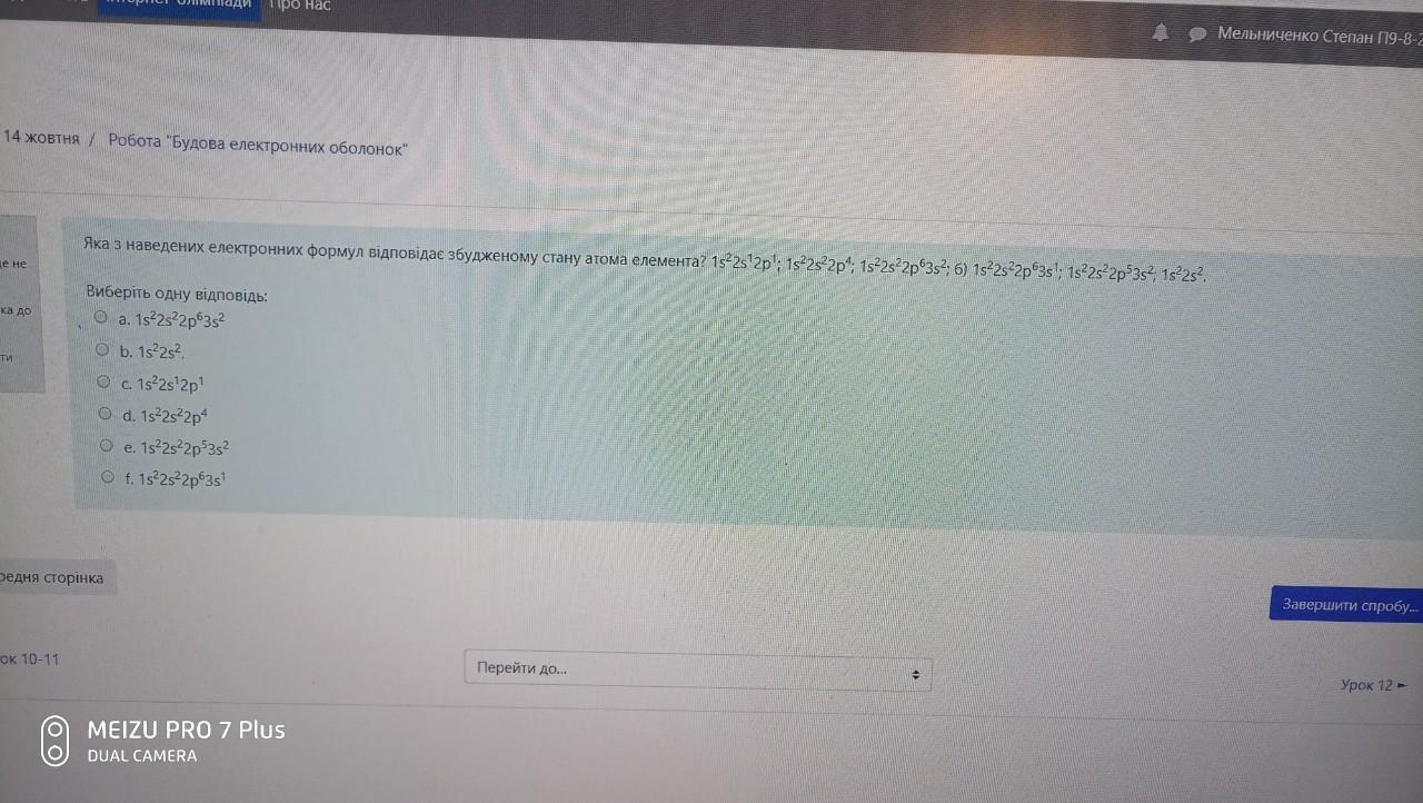 Какая из приведенных электронных формул соответствует возбужденном состояния атома элемента