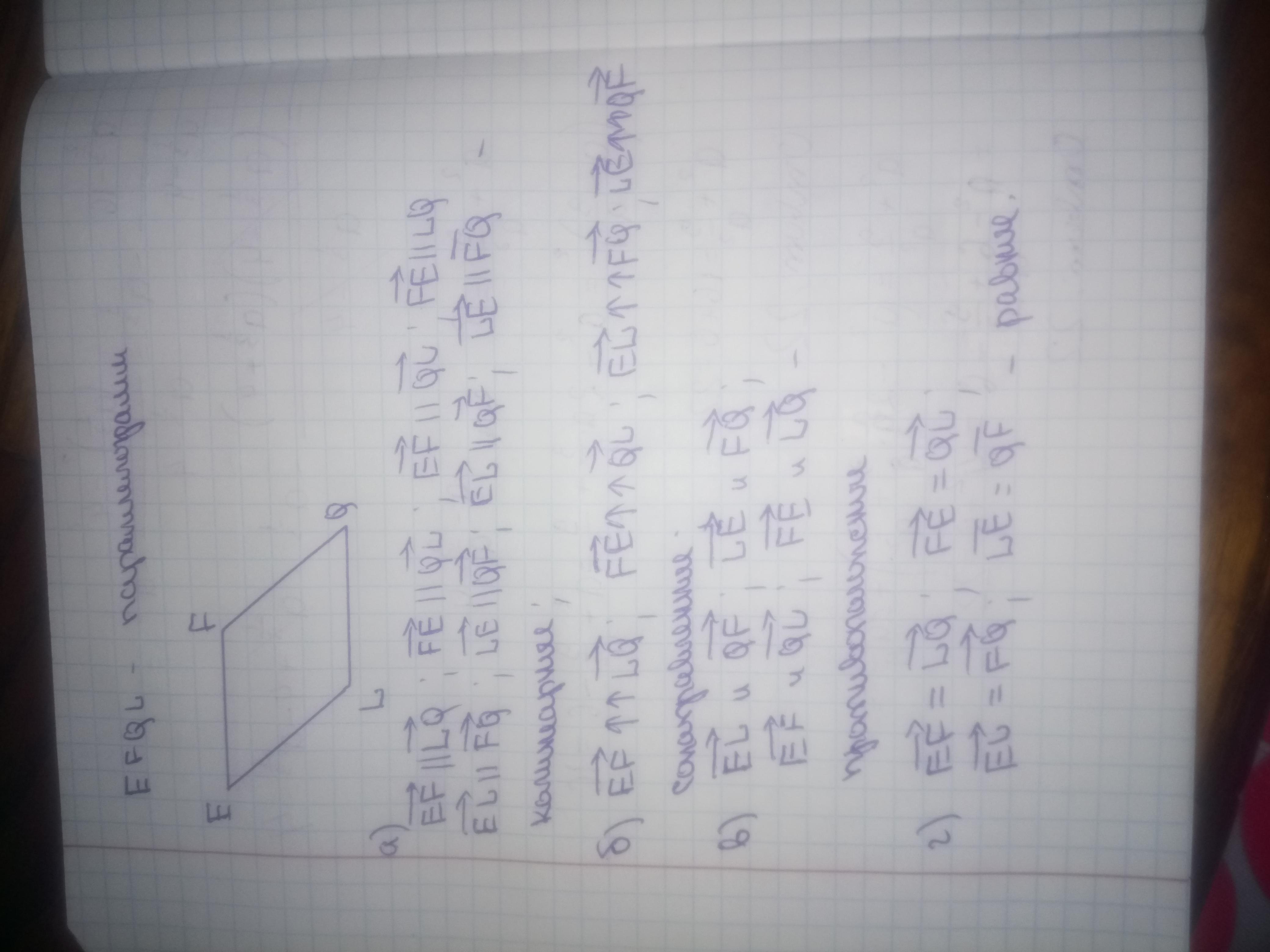 EFQL - параллелограмм укажите векторы: а)коллинеарные б)сонаправленные в)противоположные г)равные