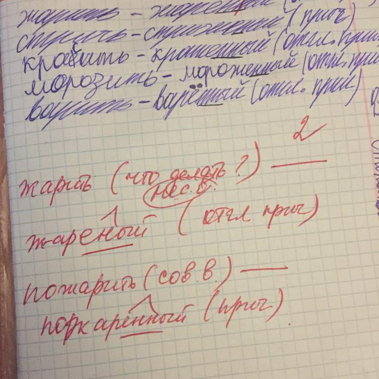 Жарить (что делать?) несоверш. вид- жареный(отл. прил.)