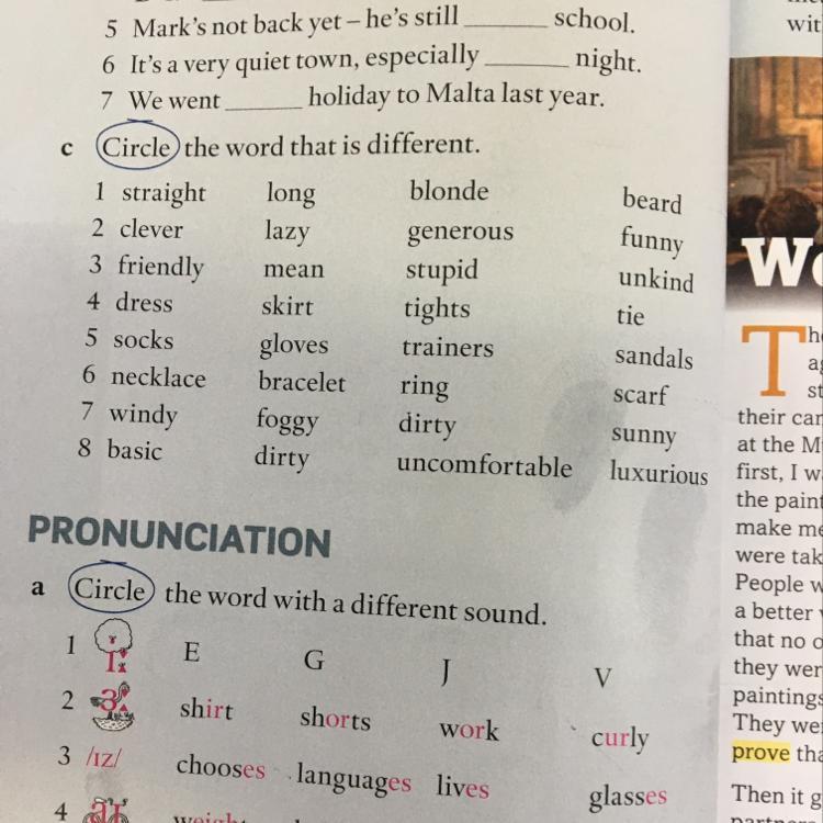 1 beard 2 lazy 3 friendly 4 tie 5 gloves 6 scarf 7 dirty 8 basic