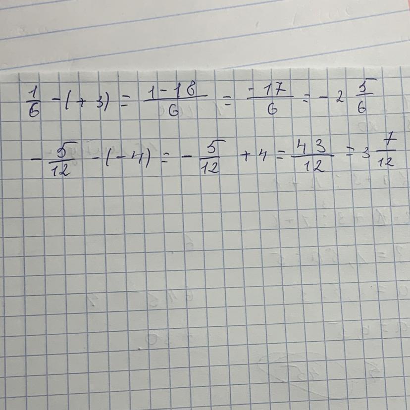 5) 1/6-(+3)=1-18/6=-17/6=-2целых 5/6
