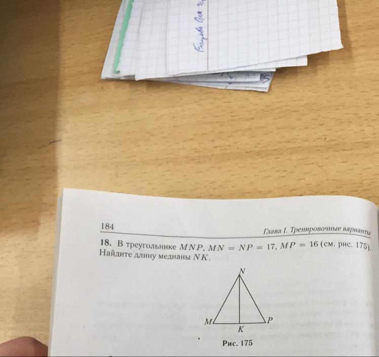 Объяснение: Треугольник равнобедренный, медиана является высотой .МК=16/2=8