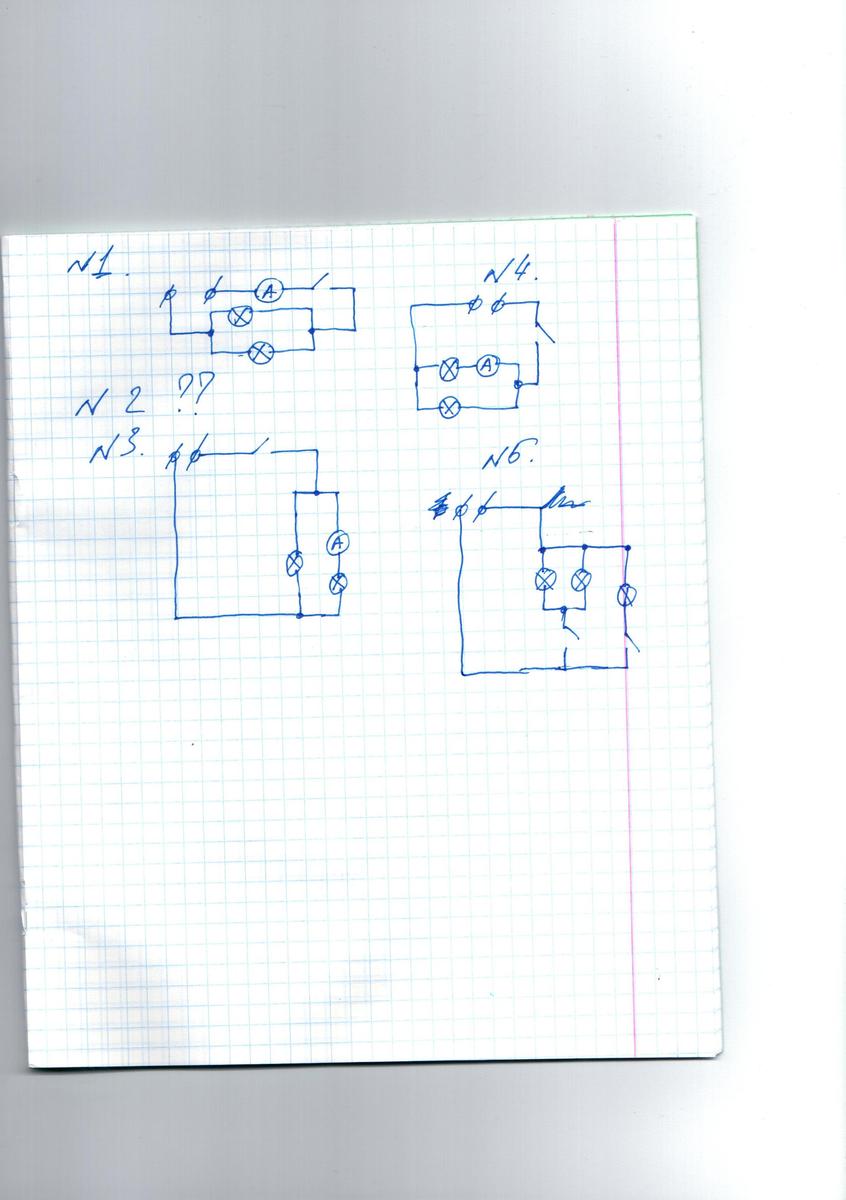 4.Нарисуйте схему, в которой амперметр измеряет силу тока во второй лампе.