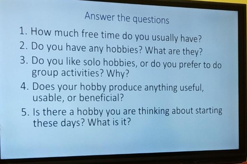 1 : For example: i ususally have (1.2.3.4..) hours of free time for my hobbies