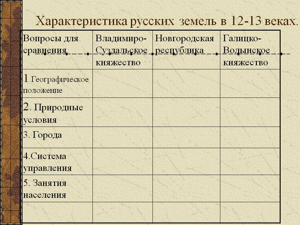 1 Владимир северо восток Новгород северо запад галицко валынское юго западная