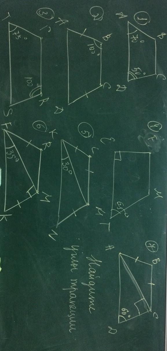 7. ∠САD=90-60=30°; ∠ВСА=∠САD=30° как внутренние накрест лежащие при ВС║АD и секущей АС; ∠ВАС=∠САD=30° по условию; ∠ВАD=30+30=60°; ∠С=∠В=180-60=120° т.к. трапеция равнобедренная