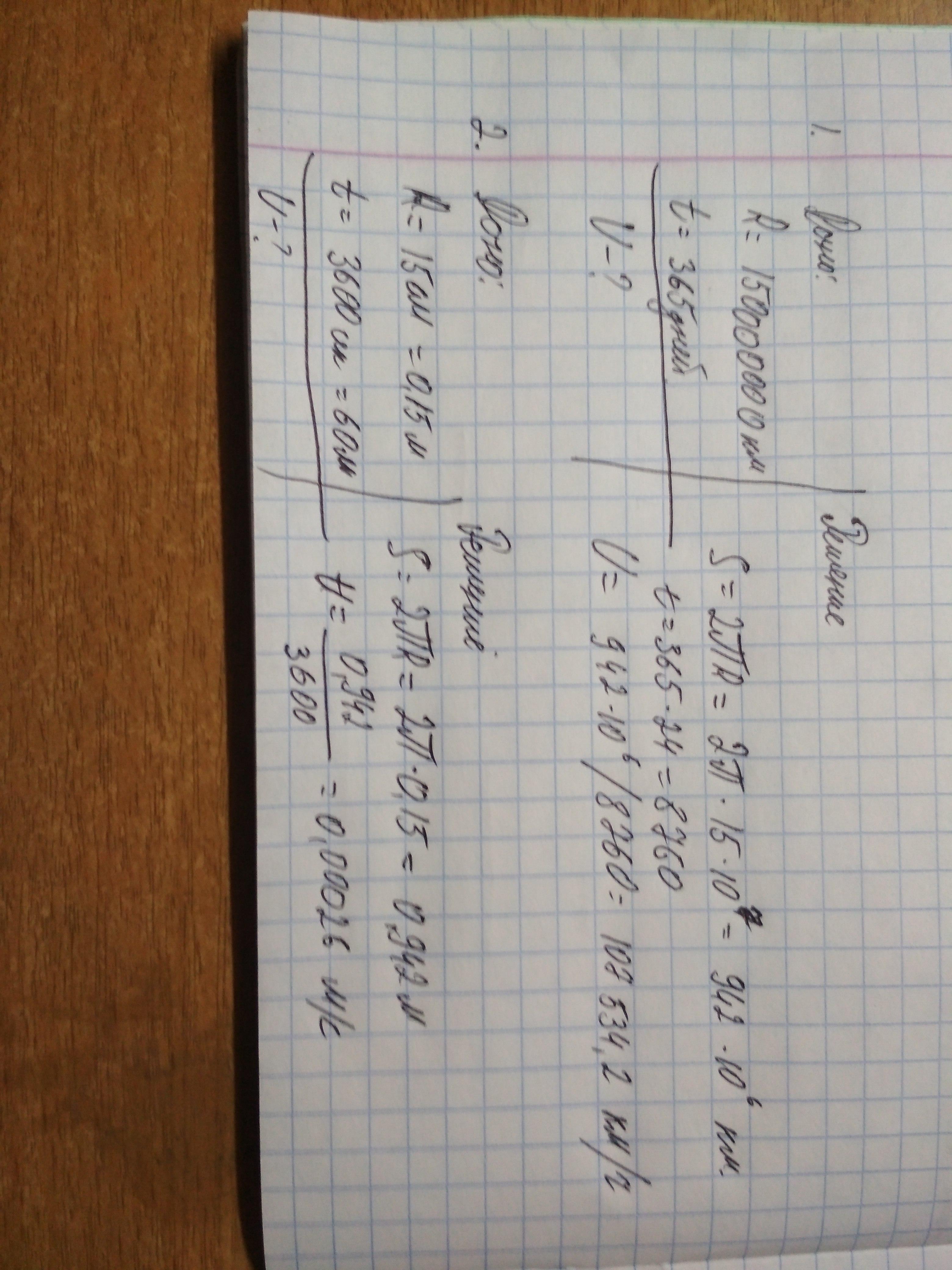 1.Вычислите скорость движения земли вокруг солнца, если радиус орбиты равен 150000000км