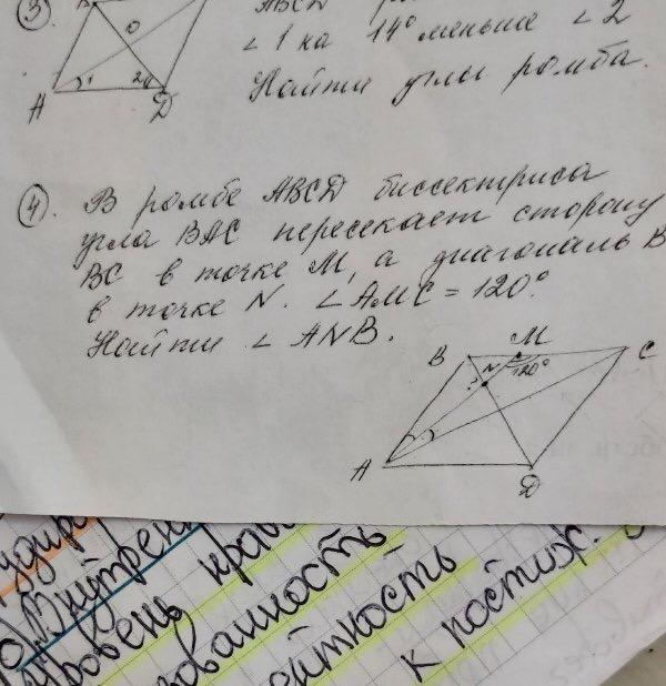 3)ΔАNО-прямоугольный, т.к. диагонали вз.перпендикулярны; по т. о сумме углов треугольника 90+20+∠АNО=180, ∠АNО=70