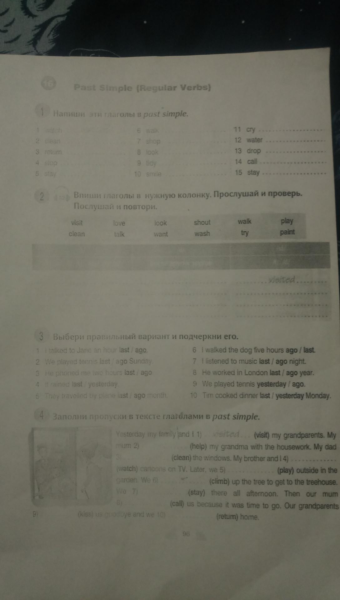 4 задание: 2. helped 3. cleaned 4. watched 5. played 6. climbed 7. stayed 8. called 9. kissed 10. returned