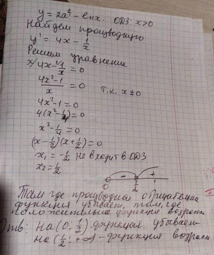 с учетом ОДЗ при х∈(0;0.5] функция возрастает, а при х∈ [0.5;+∞) убывает