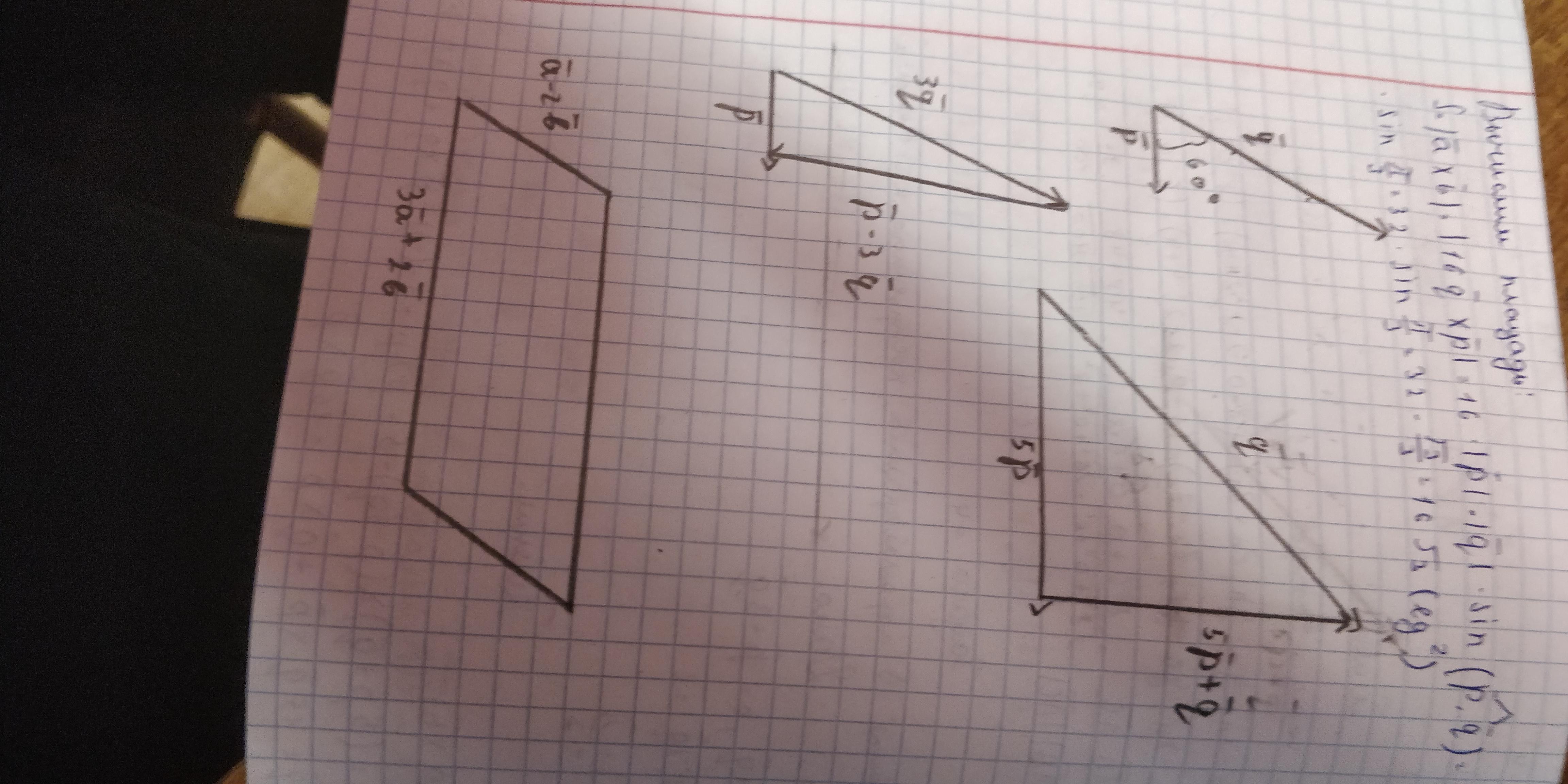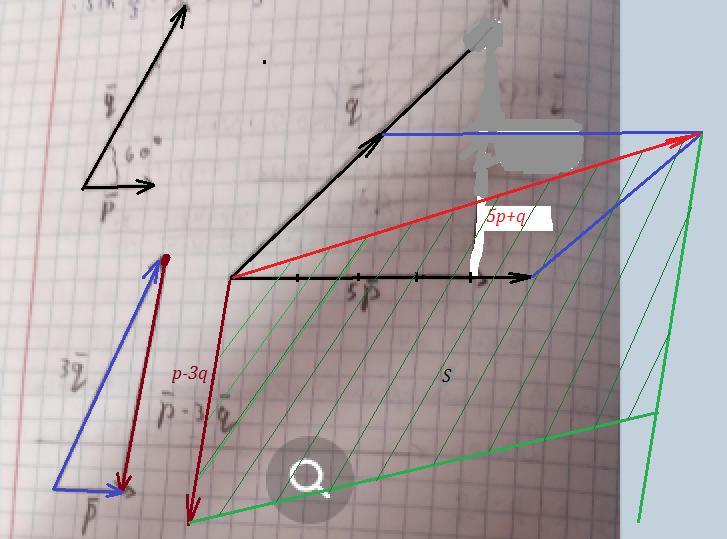 Вектор q рисуем с помощью параллельного переноса, совместив его начало с началом вектора 5р . Угол в 60 градусов сохраняется.