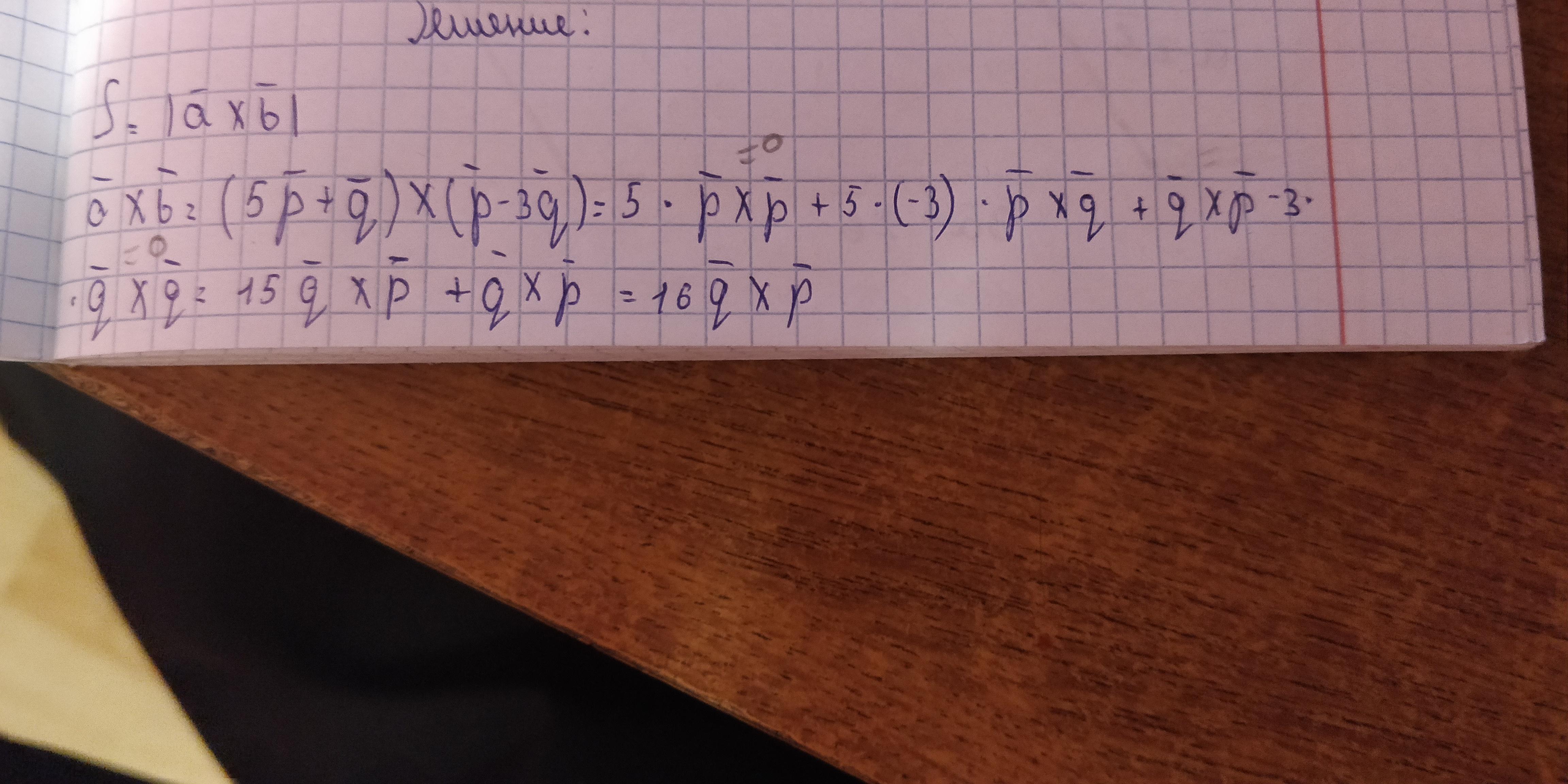 Чтобы построить параллелограмм, площадь которого равна векторному произведению векторов (5p+q) и (р-3q) , надо опять выбрать точку, которая будет началом как вектора (5р+q) , так и вектора (р-3q) . Затем достроить параллелограмм .