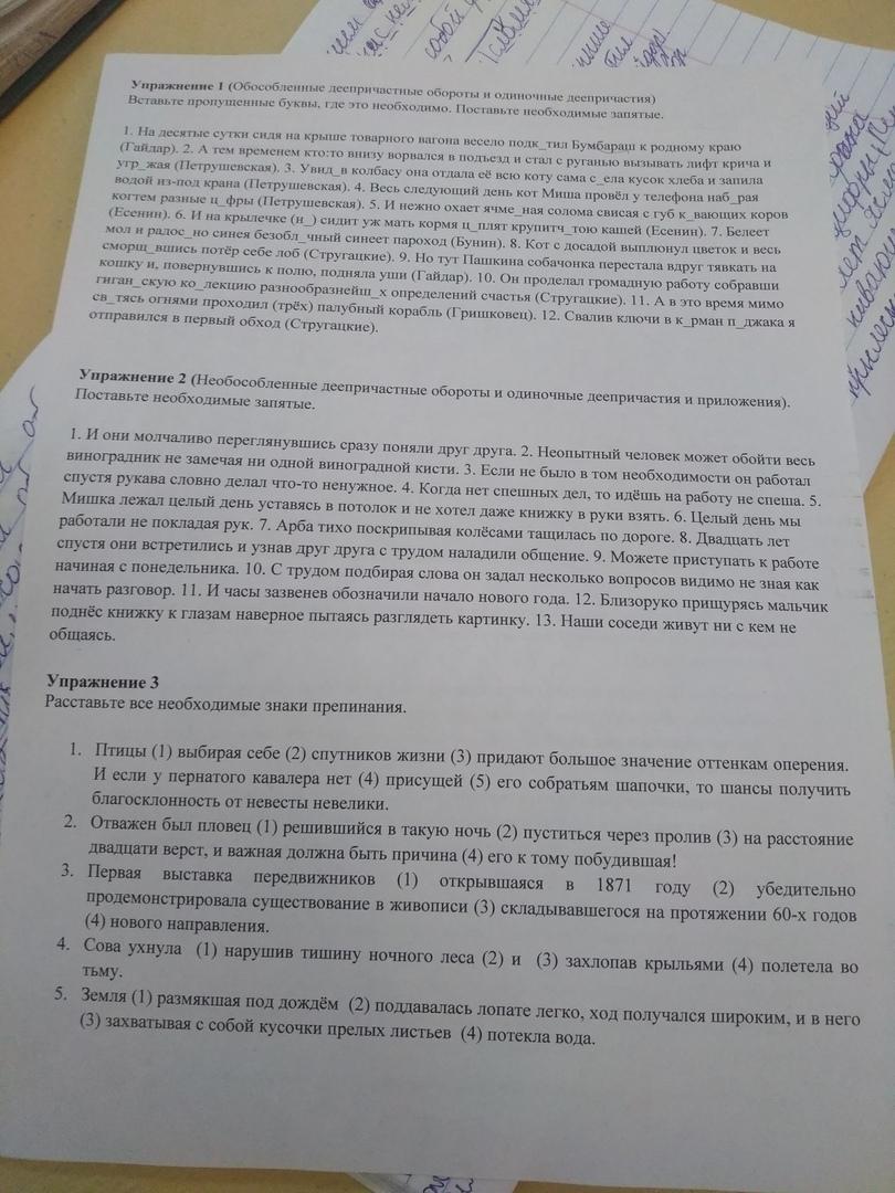 1.) И они, молчаливо переглянувшись, сразу поняли друг друга. 2.) Неопытный человек может обойти весь виноградник, не замечая ни одной виноградной кисти. 3.) Если не было в том необходимости, он работал спустя рукава, словно делал что-то ненужное. 4.) Когда нет спешных дел, то идёшь на работу не спеша. 5.) Мишка лежал целый день уставясь в потолок и не хотел даже книжку в руки взять. 6.) Целый день мы работали не покладая рук. 7.) Арба, тихо поскрипывая колесами, тащилась по дороге. 8.) Двадцать лет спустя они встретились и, узнав друг друга, с трудом наладили общение. 9.) Можете приступать к работе, начиная с понедельника. 10.) С трудом подбирая слова, он задал несколько вопросов, видимо, не зная, как начать разговор. 11.) И часы, зазвенев, обозначили начало нового года. 12.) Близоруко прищурясь, мальчик поднес книжку к глазам, наверное, пытаясь разглядеть картинку. 13.) Наши соседи живут, ни с кем не общаясь.