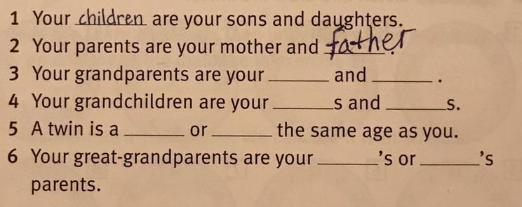 3. Your grandparents are your grandfather and grandmother