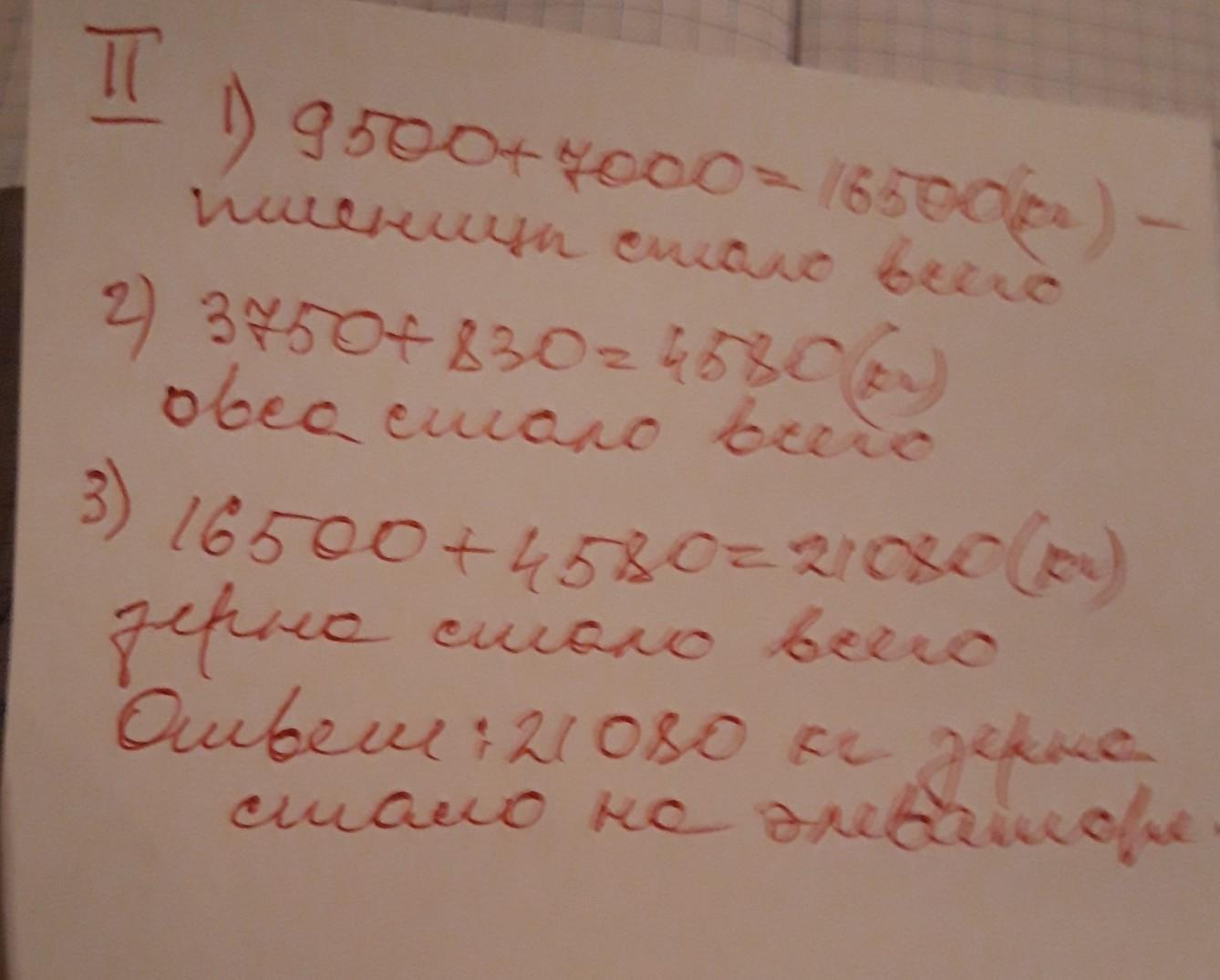 решить задачу двумя способами. На элеваторе было 9500кг пшеницы и 3750 кг овса.Сколько всего килограммов зерна стало после того ,как привезли 7 т пшеницы и отгрузили 830 кг овса?