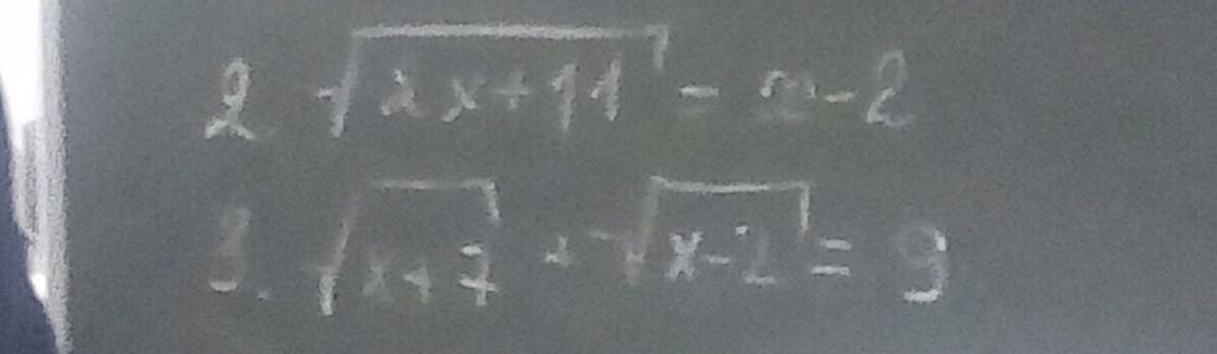 3. √(x+7)+√(x-2)=9