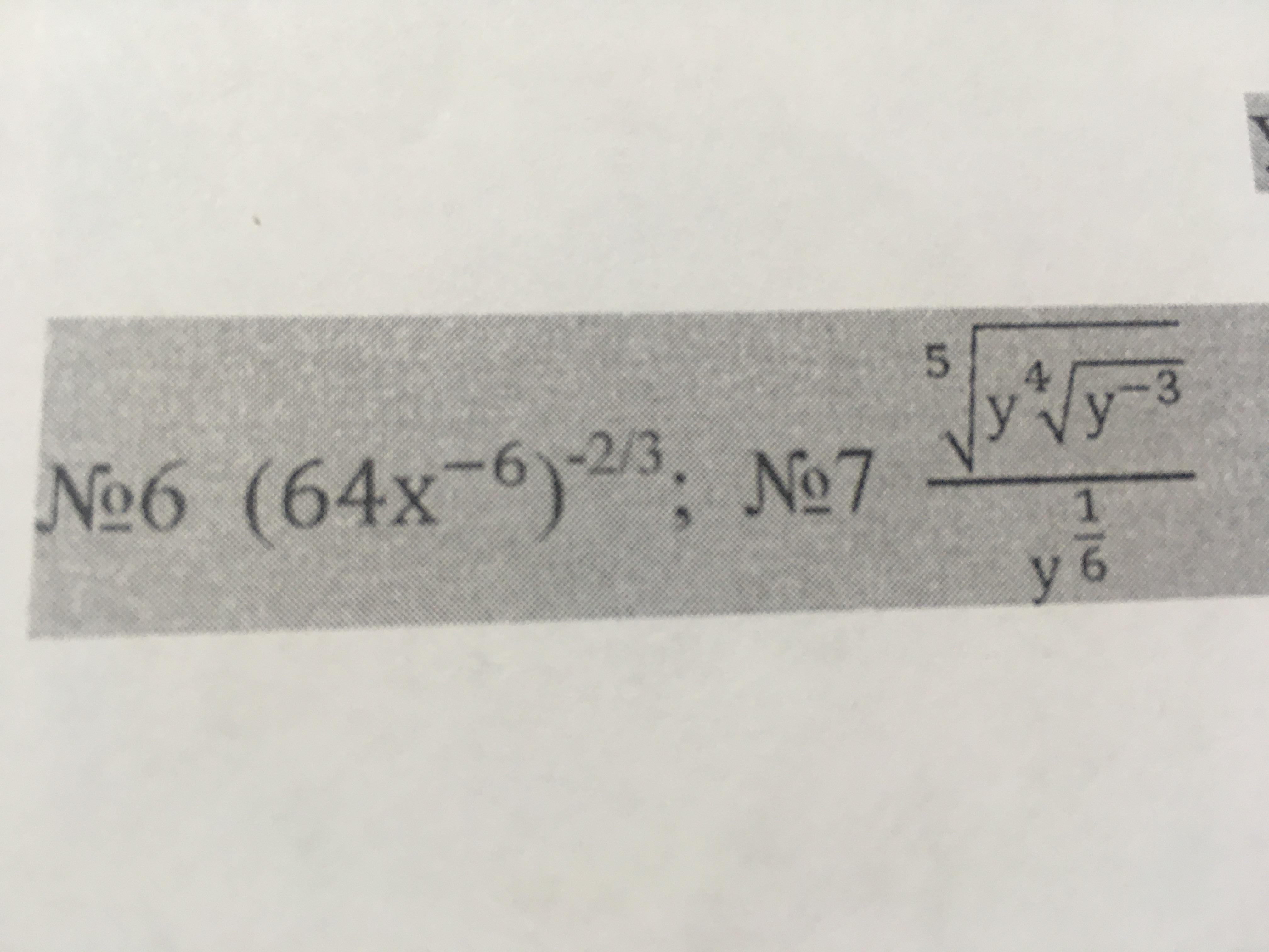 (64*x⁻⁶)⁻²/³=(4³*x⁻⁶)⁻²/³=4³*⁽⁻²/³⁾*x⁻⁶*⁽⁻²/³⁾=4⁻²*x⁴=x⁴/4²=x⁴/16.
