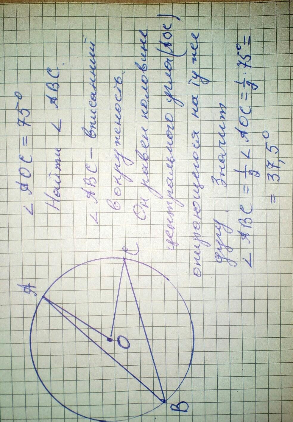 На окружности с центром в точке О отмечены точки А, В и С. Угол АОС равен 750, точка В лежит на большей дуге АС. Найдите угол АВС. Ответ дайте в градусах.