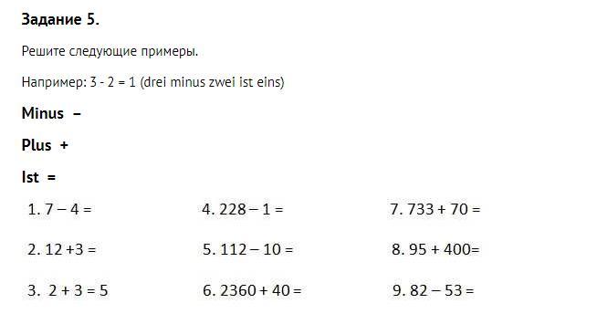 3. zwei plus drei ist fünf.