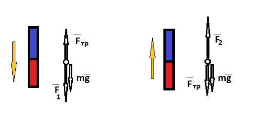 Магнит массой 50 г прилип к школьной доске. Для равномерного скольжение магнита вниз прикладывают 1,5 H. Какую силу надо приложить, что бы переместить магнит по доске вертикально вверх?