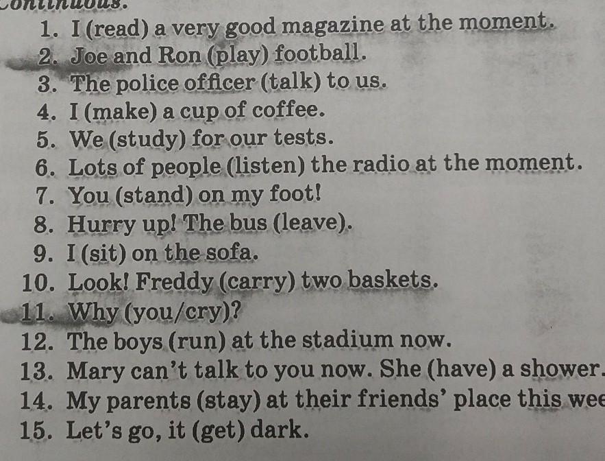 нужно раскрыть скобки,поставив глаголы вPresent Continues