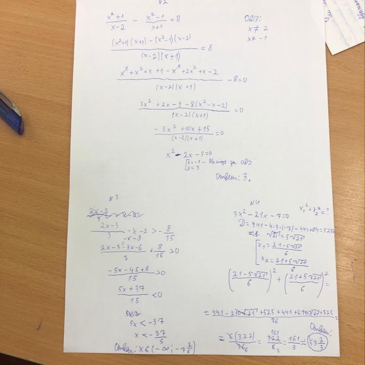 2.РЕШИТЕ УРАВНЕНИЕ х*2+1/х-2 - ч*2-1/х+1=8