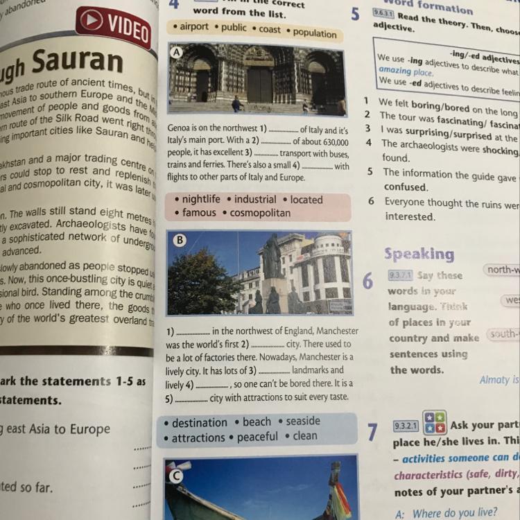 B. 1 located 2 industrial 3 famous 4 nightlife 5 cosmopolitan