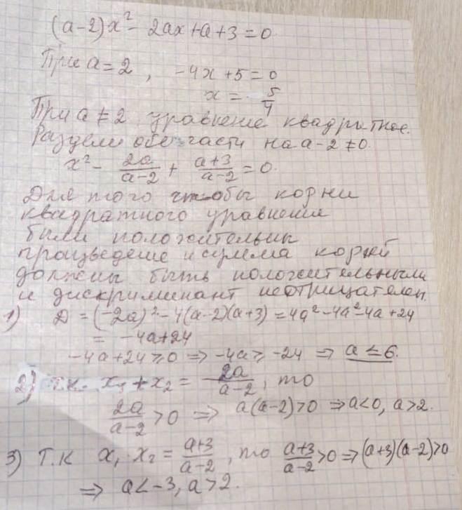 Найти все значения параметра а, при котором корни положительны. Прошу вас подробнее) Заранее большое спасибо.
