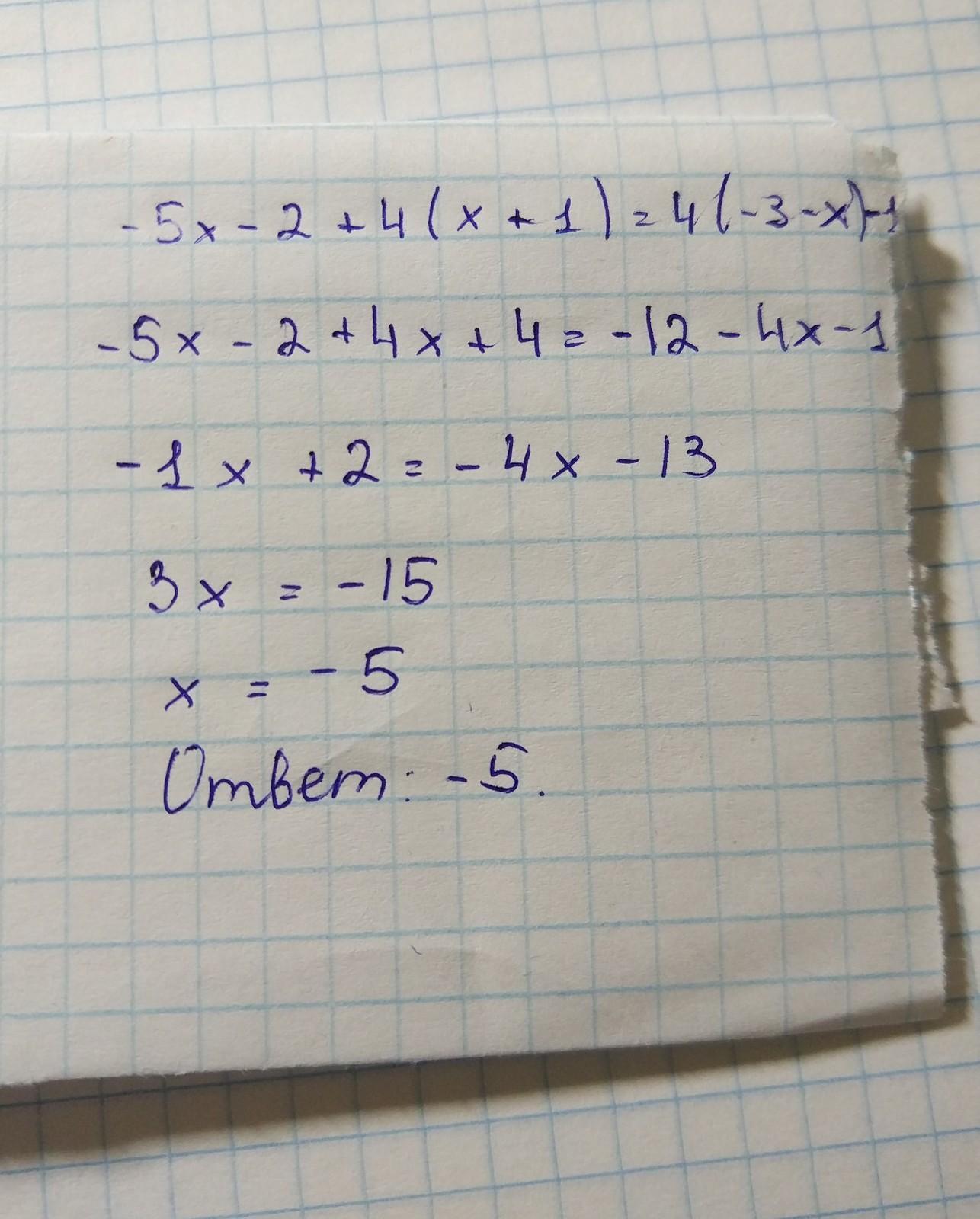 -5x - 2 + 4x + 4 = -12 - 4х - 1