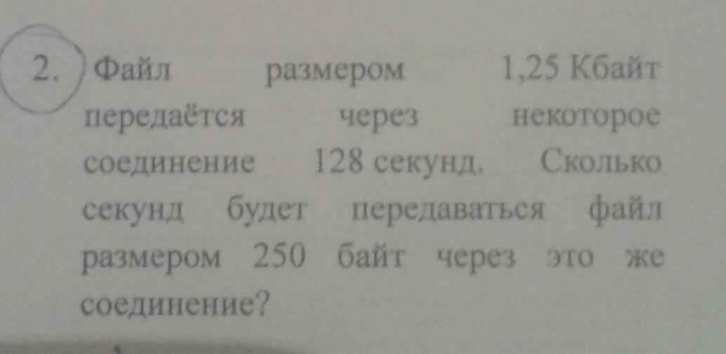 файл размером 1.25 килобайт передается через некоторое соединение 120 секунд сколько секунд будет передаваться файл размером 250 байт через это же соединение