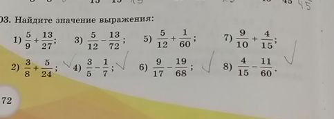 4)Общий множитель 35, к первой дроби наисеньший общий знаменательный 7, ко второй дроби 5, получаем 21-5/35 равно 16/35
