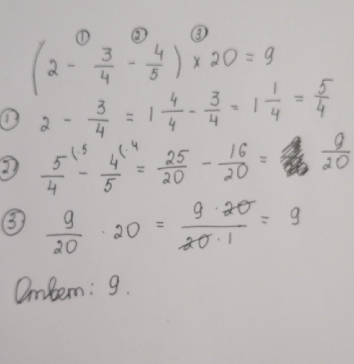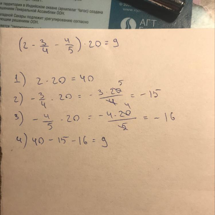 (2- 3/4 - 4/5) х 20=.