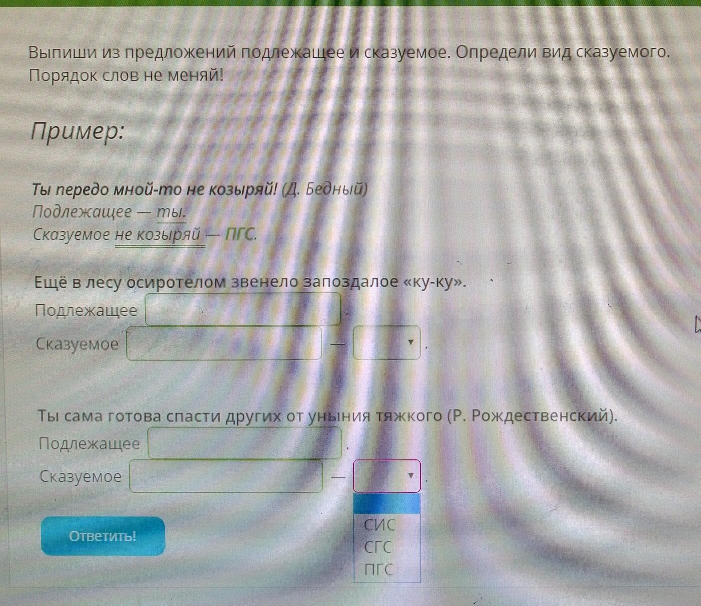 а подлежащее получается в 1 - "ку-ку" , а во 2-ты?