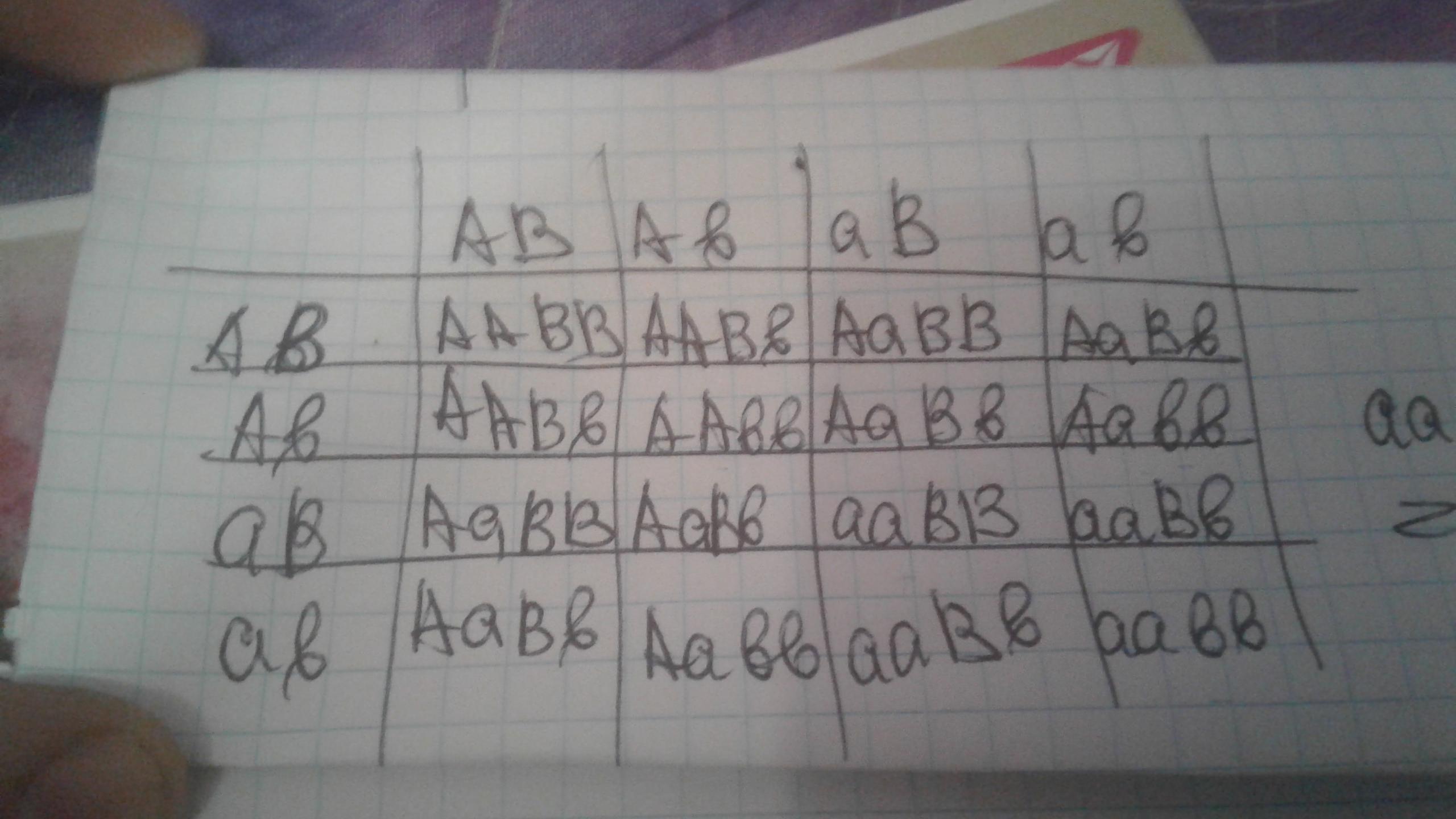 Объяснение:т.к аавв встречаеться 1 раз в решетке пеннета то следовательно 1/16