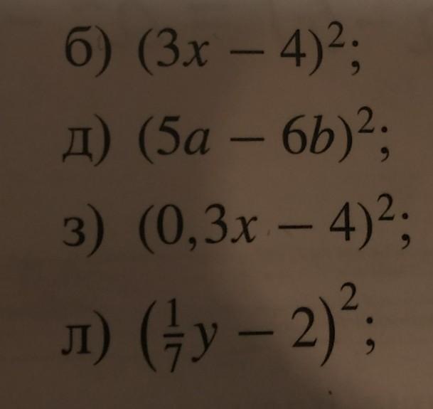 л) (1/7у-2)²=1/49у²-4/7у+4