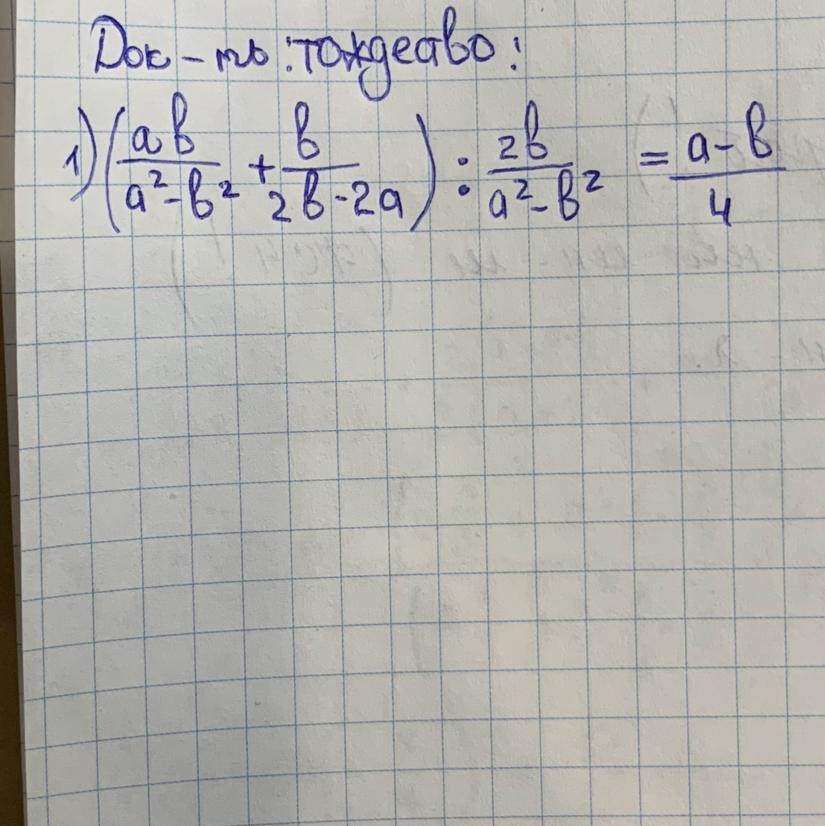 (\frac{ab}{a^2-b^2} +\frac{b}{2b-2a}):\frac{2b}{a^2-b^2} =\frac{2ab-b(a+b)}{2(a+b)(a-b)}*\frac{(a+b)(a-b)}{2b} =\frac{2ab-ab-b^2}{4b}=\frac{ab-b^2}{4b}=\\=\frac{b(a-b)}{4b}=\frac{a-b}{4}