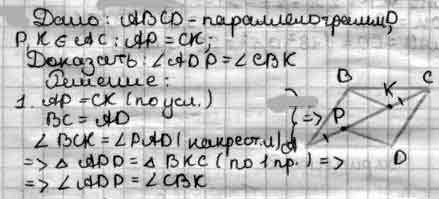 На диагонали АС параллелограмма ABCD отметили точки Р и К так, что АР = СК (точка Р лежит между точками А и К). Докажите, что ADP =CBK.